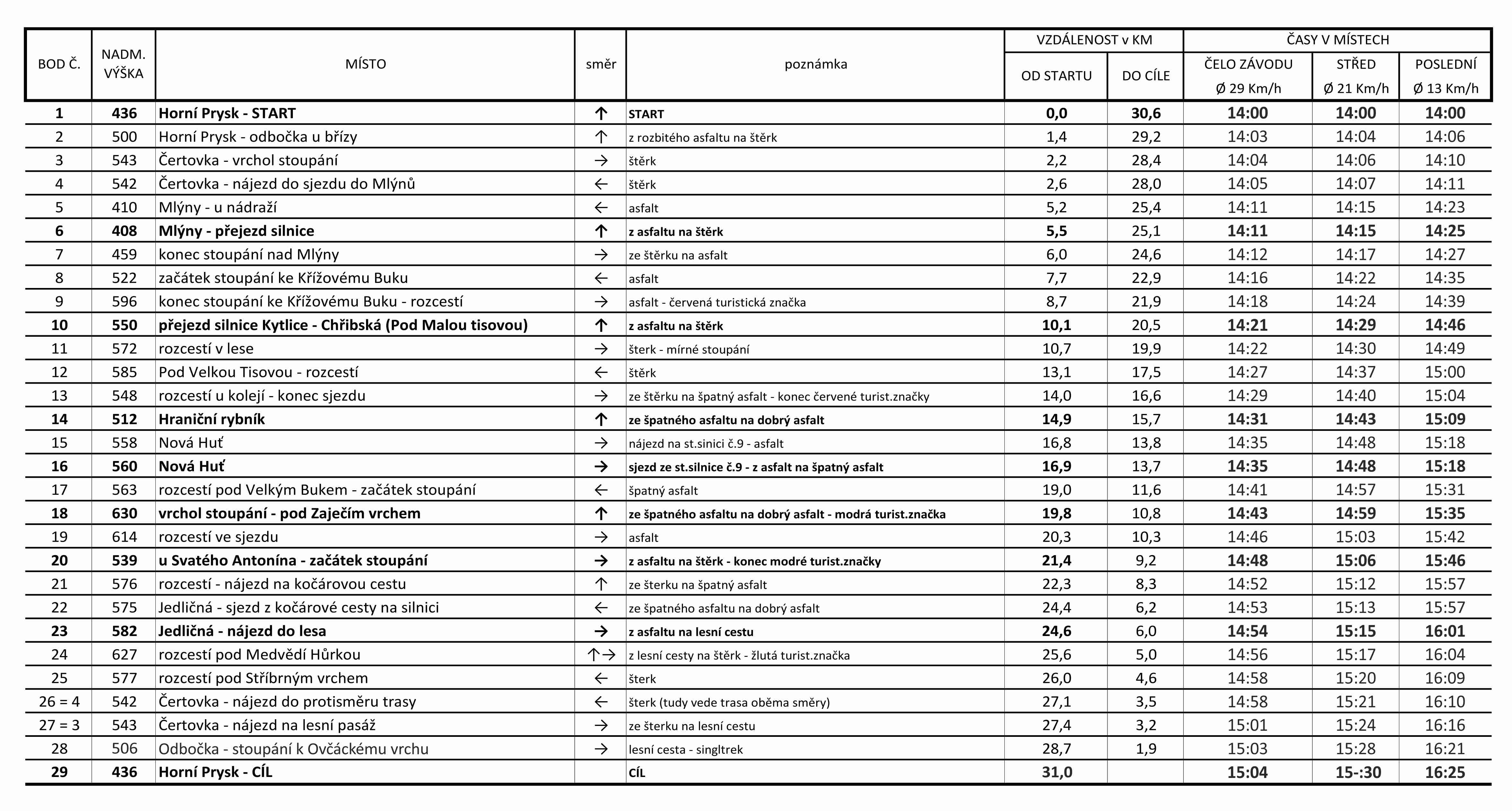 | Časy startů jsou pouze orientační. Pořadatel si vyhrazuje právo na změny v harmonogramu | ||||